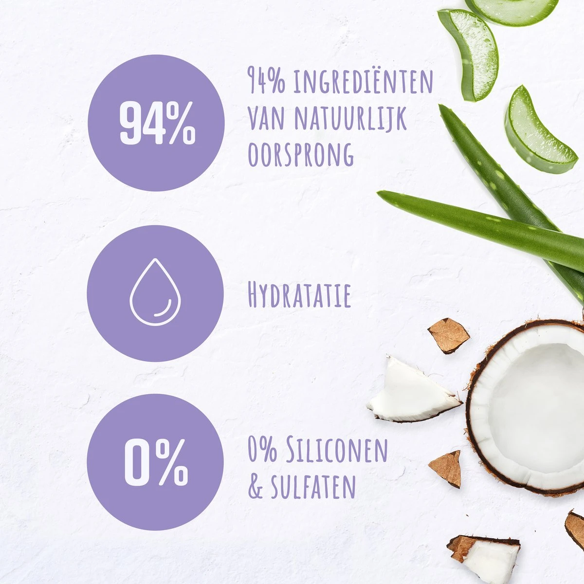 • Hydraterende en extra milde shampoo verrijkt met aloë vera en kokosmelk