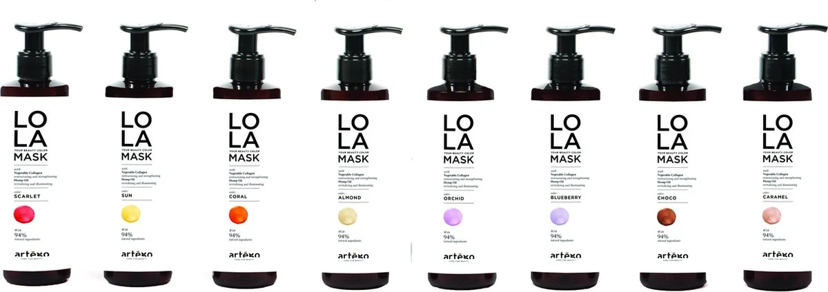 Artégo LOLA Your Beauty Color Mask is een ton sur ton kleurenmasker . Het is gemakkelijk en snel in de applicatie , heeft een aangename geur en geeft het haar glans . Met het LOLA Colour Mask glanst je haar in een nieuw licht, met een glanzend WOW-effect. Lola Color Mask geeft het haar maximale uitstraling. Met 94% natuurlijke ingrediënten . Het plantencollageen herstructureert en versterkt . Hennepolie laat het haar glanzen en revitaliseert het. LOLA versterkt datKleurintensiteit , geeft maximale glans en een langer expressief en intens kleurresultaat!