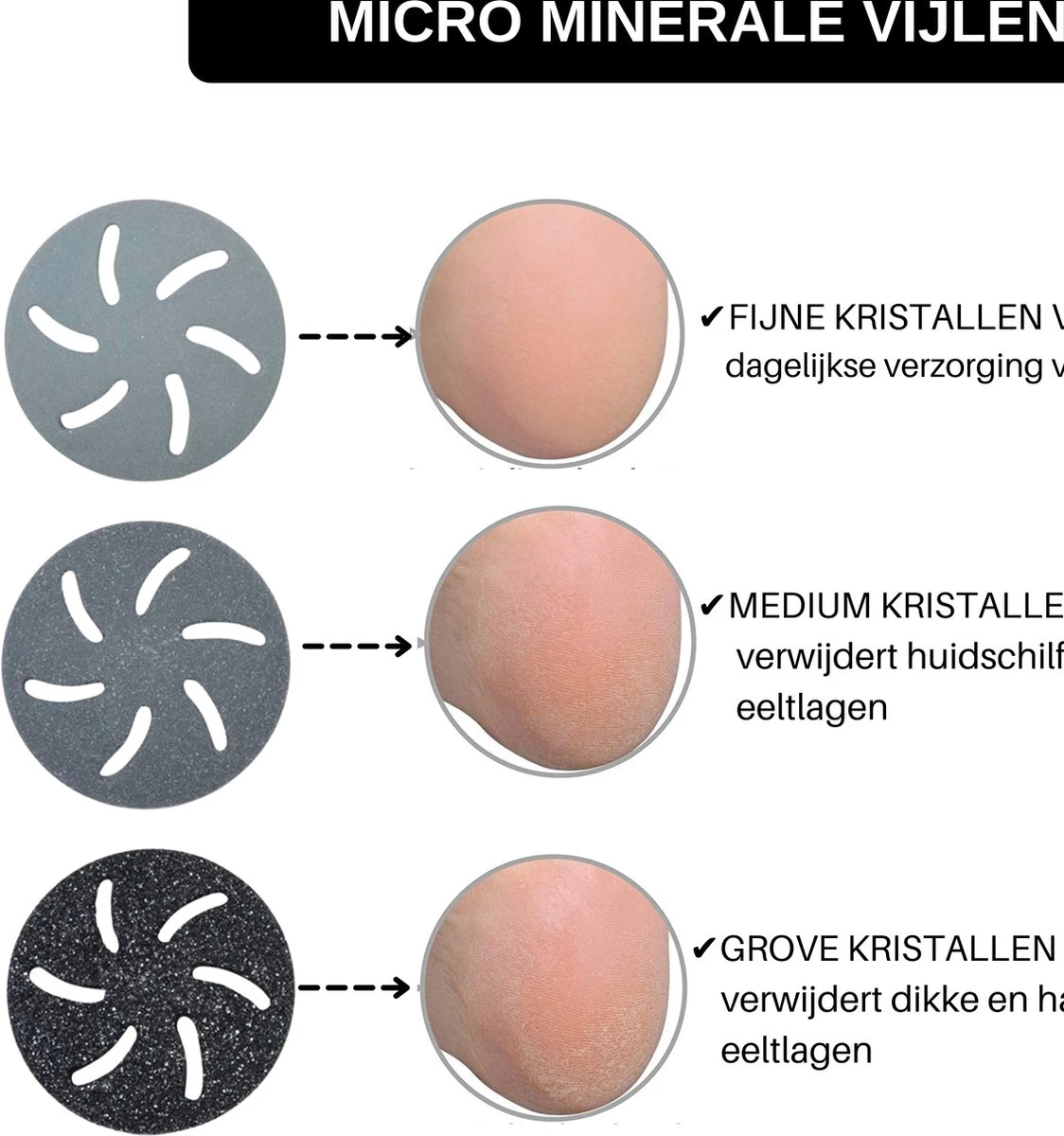 Vijlschijven voor de Forgoods Eeltverwijderaar (3 stuks fijn, medium en grof). Met de vijlschijven kan je de huid zacht en glad maken, bevestig één van de vijlschijven op de elektrische eeltverwijderaar en laat vervolgens deze het werk doen. Je hebt de keuze uit fijn, medium of grof.