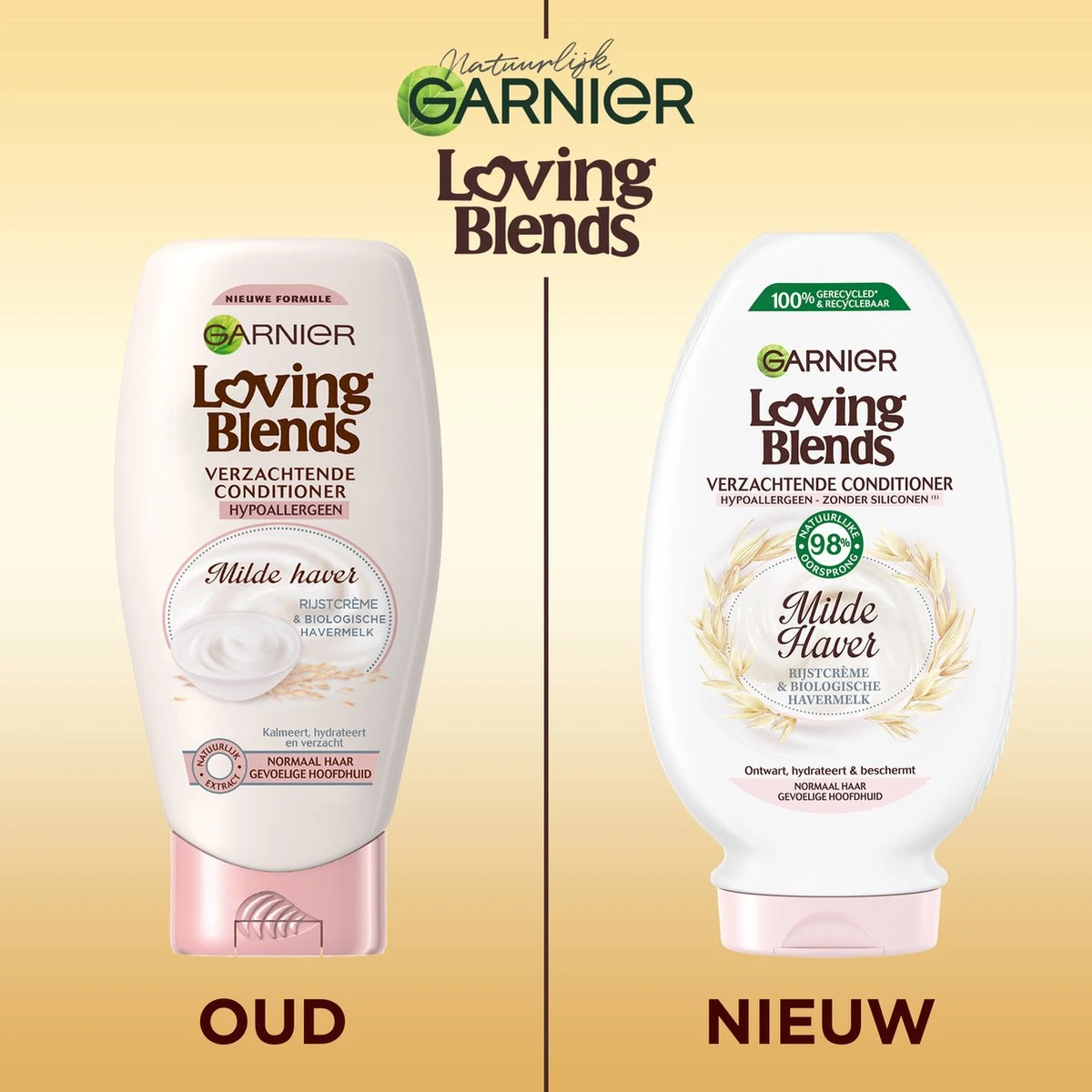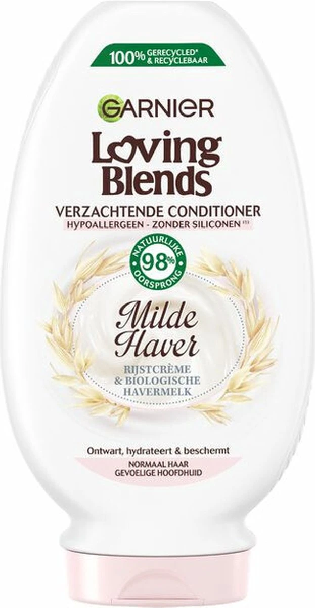 Speciaal voor normaal haar en gevoelige hoofdhuid heeft Garnier Loving Blends een formule samengesteld die twee zachte ingrediënten combineert: Rijstcrème en havermelk. Dagelijks gebruik van deze milde formule maakt het haar zachter en soepeler. De hoofdhuid is onmiddellijk gekalmeerd en minder gevoelig.