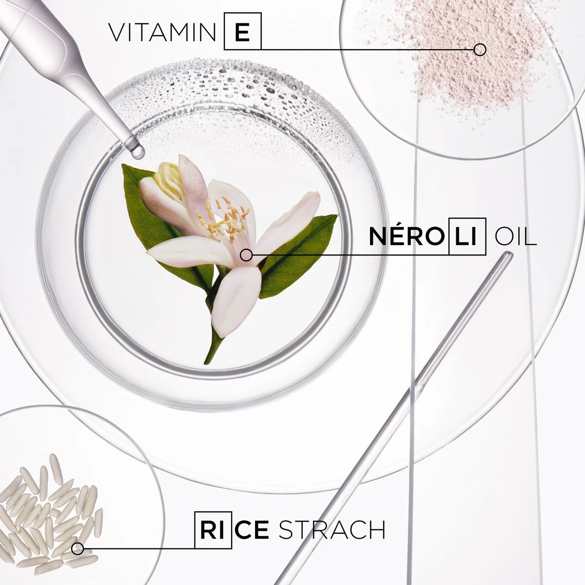 Rijstzetmeel absobeert talg en productopbouw, waardoor de wortels en het haar schoon en fris blijven. Vitamine E* is een voedingsstof met beschermende eigenschappen die voorkomt dat het haar en de hoofdhuid uitdrogen. * vitamine E derivaat