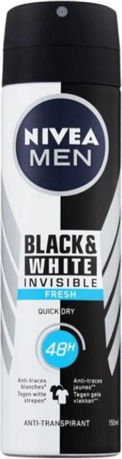 NIVEA MEN Invisible For Black & White Fresh – 6 X 150ml – Voordeelverpakking – Deodorant Spray
