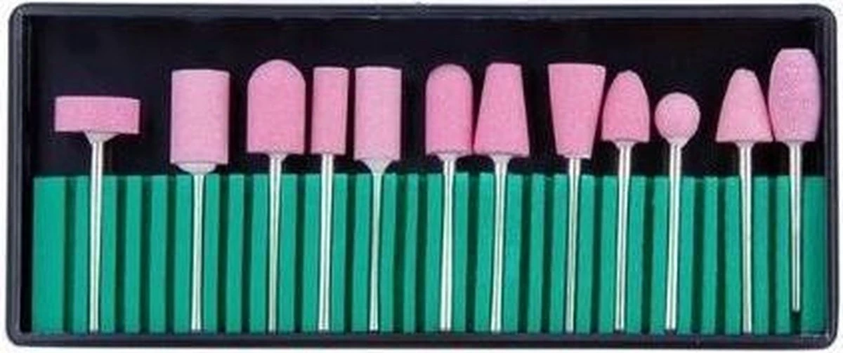 Complete set bitjes voor nagelfrees, 12 stuks in totaal.
