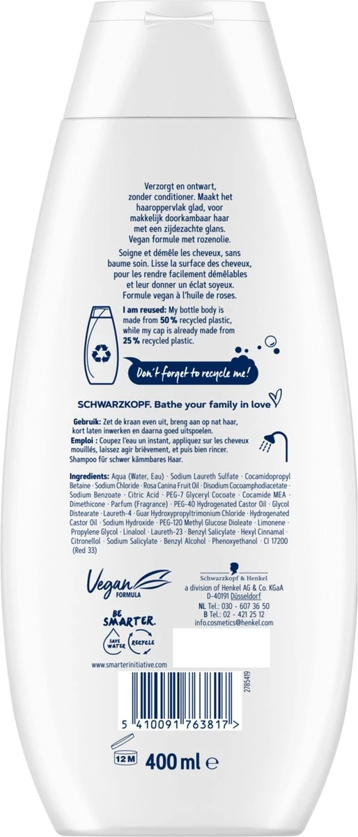 - De shampoo bevat rozenolie.