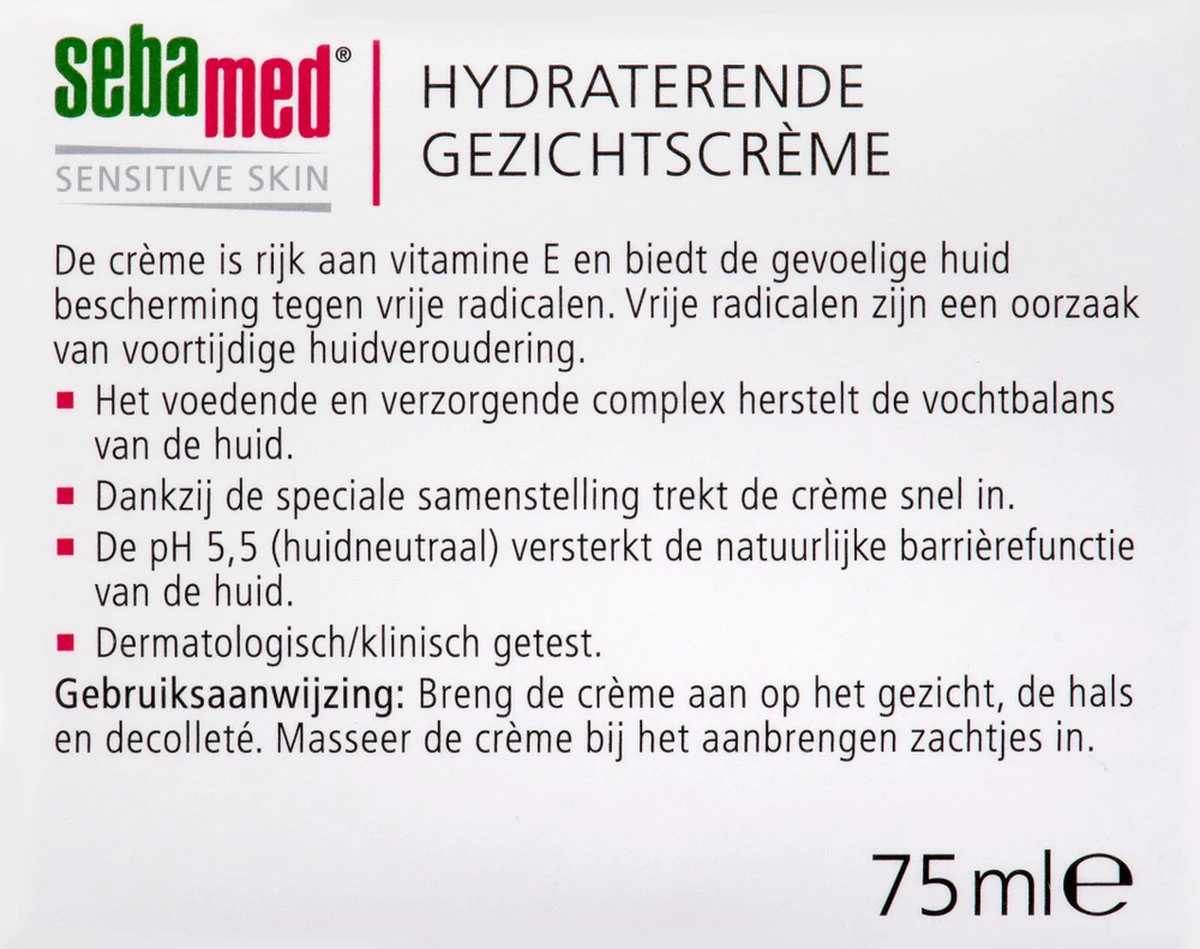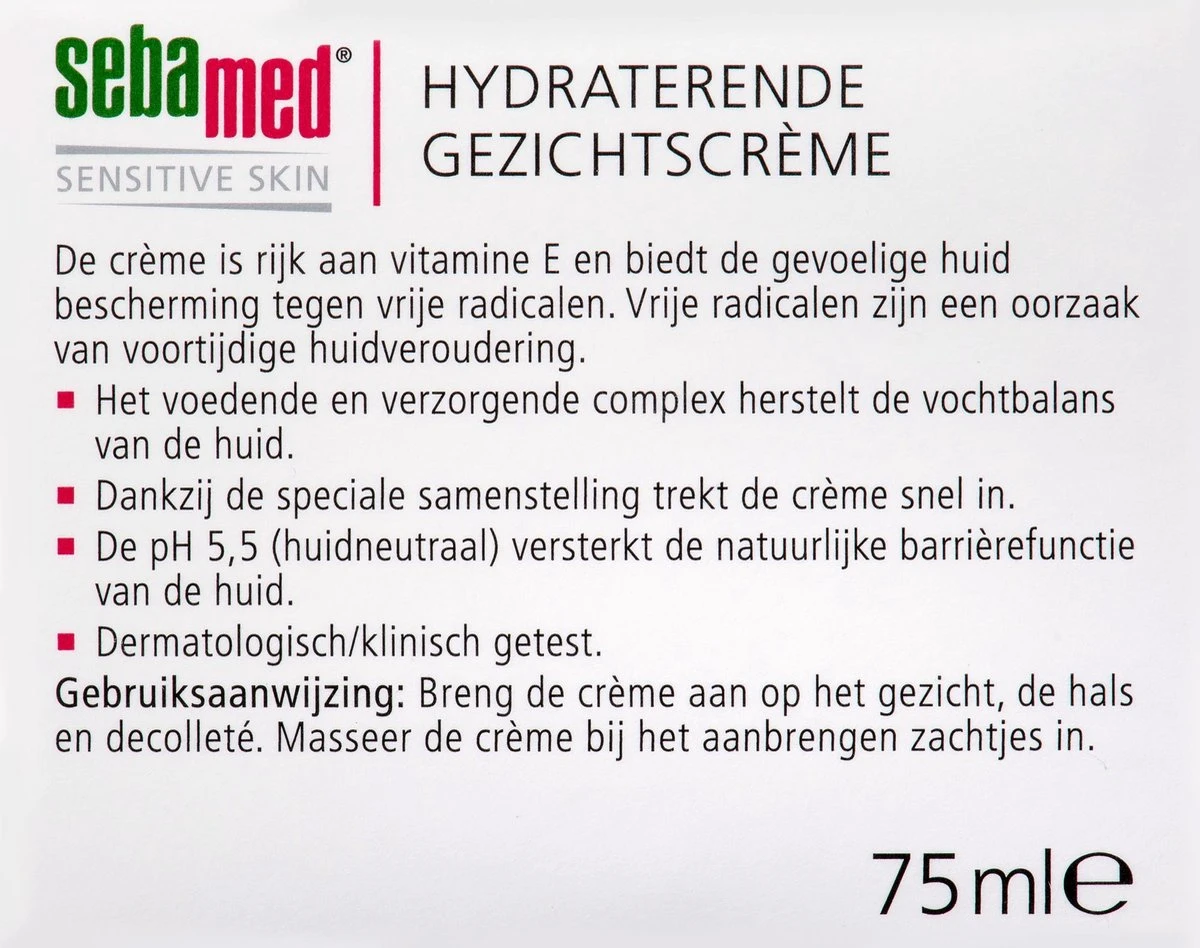| Ingrediënten | Aqua, Caprylic/Capric Triglyceride, Glycerin,Tocopheryl Acetate, Glyceryl Stearate Citrate, CetearylAlcohol, Biosaccharide Gum-1, Citric Acid, Sodium Hydroxide, Sodium Carbomer, Parfum, Benzyl Alcohol,Phenoxyethanol |